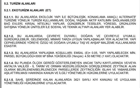 Bölgeyi kapsayan üst ölçekli planlarda Limanağzı’nın ‘Eko-Turizm’ alanı olarak ayrıldığını belirten Mumcu, uygulamaya dönük alt ölçekli planların da bu çerçevede hazırlanmasının zorunlu olduğuna değinerek zemin etüdü yapıldıktan sonra eko-turizm amaçlı imar planı hazırlanacağını söyledi: “Bizim zemin etüdü yaptırmak için o iş makinesini oraya getirmemiz gerekiyor. Orman arazisinden geçecek 380 metre uzunluğunda, 4 metre genişliğinde bir parkur için ilgili kurumlardan uygun görüşlerin alınması gerekiyor. Bir sene de bu izinler için uğraştık. Uygun görüşler alındı. Turizm sezonu içerisinde zaten bir çalışma yapılamıyor. İnşaat yasağı dönemi bitince biz de çalışmalara başladık. Burada bir traktör römorkunun geçebileceği genişlikte bir geçiş için zemin düzelmesi yapılıyor. Toplamda yaklaşık 1600 m2’lik bir alanı kapsıyor. Bu bir arazi tesviyesi. Buna nasıl yol dersiniz? İmar hakkı, mülkiyet hakkının bir cüzüdür. ‘Oraya bir şey yapılmasın’ deniliyor. Sizin malınıza, arazinize bir şey yapılmasın desek buna razı gelir misiniz? Üstelik burada dünyada verilebilecek en düşük ve en zorlu koşullarda imar veriliyor. Buna da itiraz etmiyoruz. Hayatımız boyunca kimseden bir imtiyaz talep etmedik. Burası için de herhangi bir imtiyaz istemedik.”