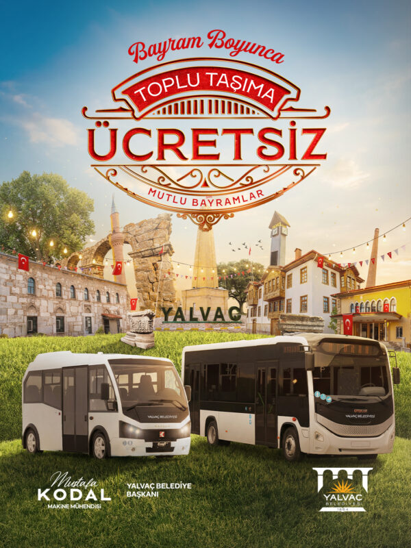 Yarından itibaren kutlayacağımız mübarek Ramazan Bayramı’nda Yalvaç’ta vatandaşların toplu taşıma araçlarından ücretsiz yararlanabileceği duyuruldu.