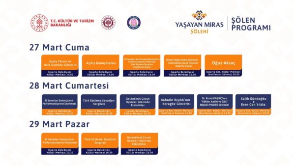 Şölen, 29 Mart Pazar günü el sanatları performansları ve geleneksel çocuk oyunları etkinlikleriyle sona erecek. Açılış ise 27 Mart Cuma günü saat 14.00’te, Isparta Valisi Abdullah Erin, Belediye Başkanı Şükrü Başdeğirmen ve Genel Müdür Selim Terzi’nin katılımıyla gerçekleşecek.