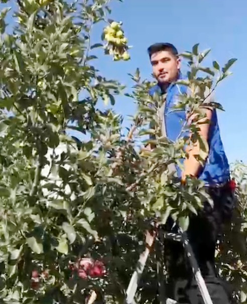 Gençlik Merkezi gönüllülerinden elma toplama işine yardım