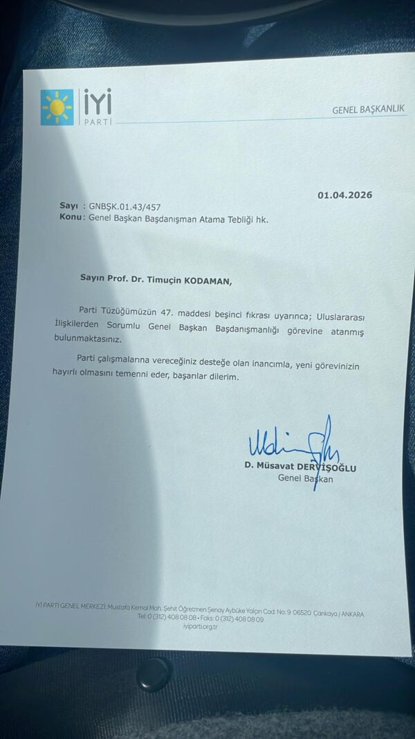 Kodaman’ın, önümüzdeki süreçte hem Türkiye’nin dış politika gündemine hem de İYİ Parti’nin uluslararası ilişkiler stratejisine yön verecek çalışmalarda aktif rol alması bekleniyor.