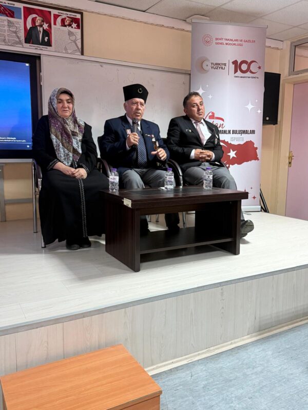 Etkinlikte şehit annesi Şerife KALKAN, vazife malulü Gazi Nevruz DAL ve Kıbrıs Gazisi Mehmet DEVELİ, Yalvaç Şehit Latif Keçeci Anadolu Lisesi öğrencileriyle bugüne kadar yaşadıklarını anlattılar ve duygularını paylaştılar.