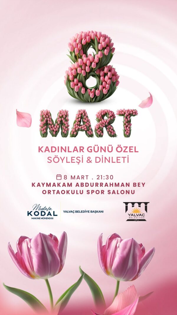 Yalvaç Belediye Başkanı Mustafa Kodal, 8 Mart Kadınlar Günü’nü tebrik ederek, “Hem hanımlarımızın bu önemli gününü kutlamak hem de Ramazan ayının iklimine uygun bir etkinlik planladık. Tüm hanım hemşehrilerimizi etkinliğimize davet ediyoruz.” dedi.