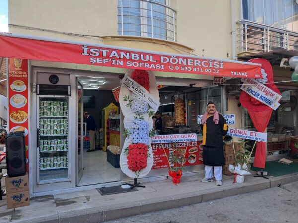 Çarşı Mahallesi’nde Yoğurt Pazarı yanında açılan İstanbul Dönercisi adlı işletmenin açılış törenine Yalvaç Belediye Başkanı Mustafa Kodal, Ak Parti İlçe Başkanı Gencer Kondal, Müftü Murat Kaya, SP İlçe Başkanı Kemal Kaleli, çeşitli siyasi parti temsilcileri, belediye meclisi üyeleri ve çok sayıda vatandaş katılım gösterdi.